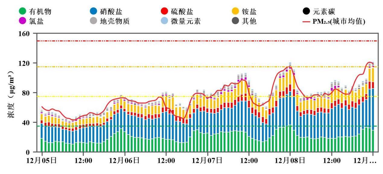 12月5日至9日8时武汉市超级站组分重构与PM2.5浓度值变化
