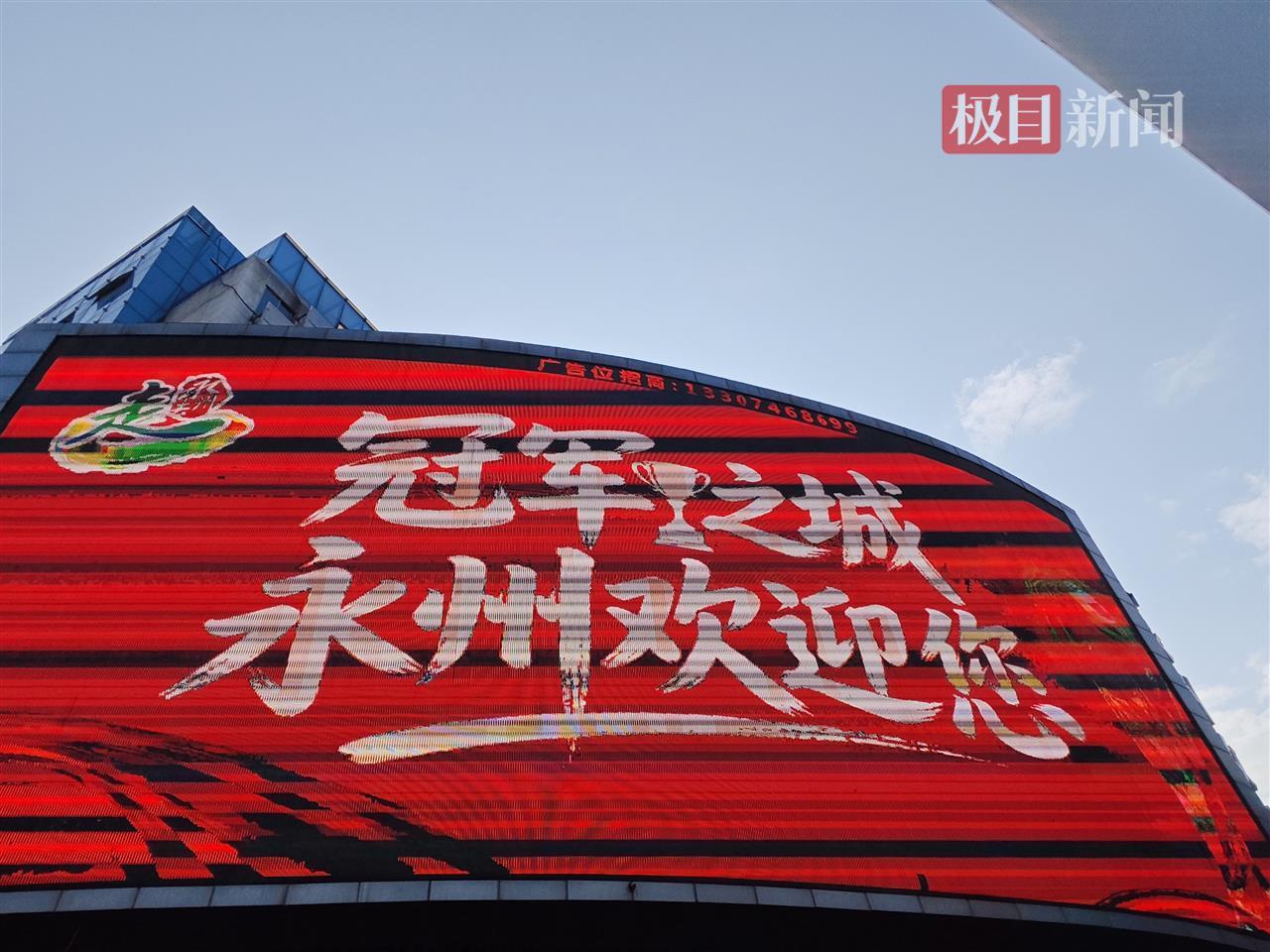 “湘超冠军城,永州欢迎您!”12月28日上午,极目新闻记者在湖南永州街头多处看见庆贺永州湘超夺冠的宣传标语。