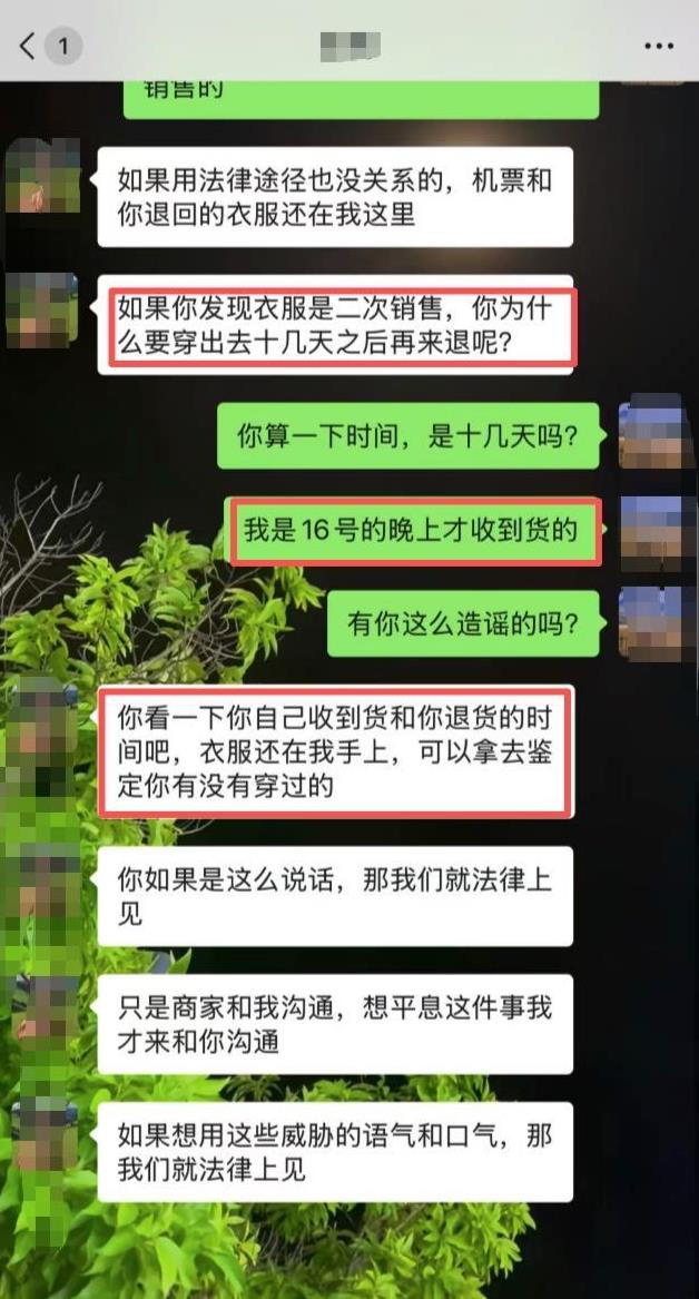 12月29日,苏女士回应称,她花633元在电商平台某商家购买羽绒服,12月16日收货,她发现羽绒服吊牌有打结,疑似是退换货商品二次销售,商家否认,她因此申请退货。12月17日,她带着羽绒服从三亚前往哈尔滨,落地时穿上羽绒服,把登机牌顺手装入口袋,她称:“我只穿过一次,是从机场到酒店路上,然后再没有穿过。”12月24日,苏女士返回三亚后将羽绒服寄出。