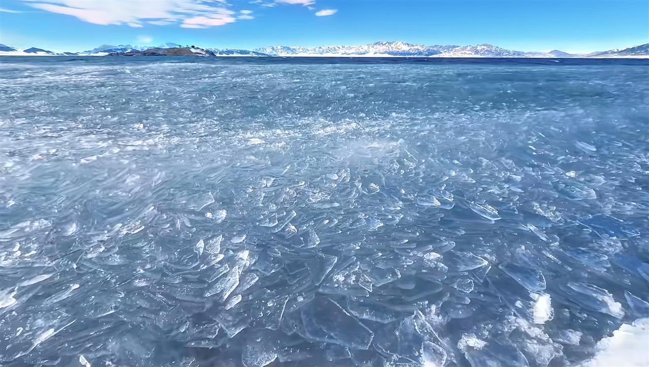 有网友在相关视频的评论区写道:“这简直就是‘浮光跃金’最生动的体现。”还要网友表示,这些晶莹剔透的冰片,层层叠叠,被推向岸边,酷似巨龙的鳞片。