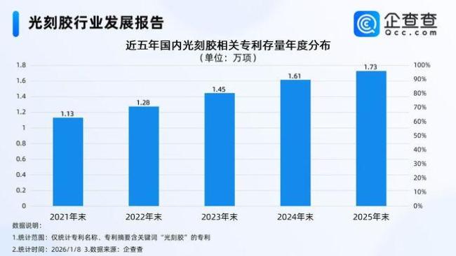 据企查查数据显示,截至1月12日,国内光刻胶相关现存企业达1040家,相关专利已达1.73万项。光刻胶用光引发剂走向市场 突破“卡脖子”难题。