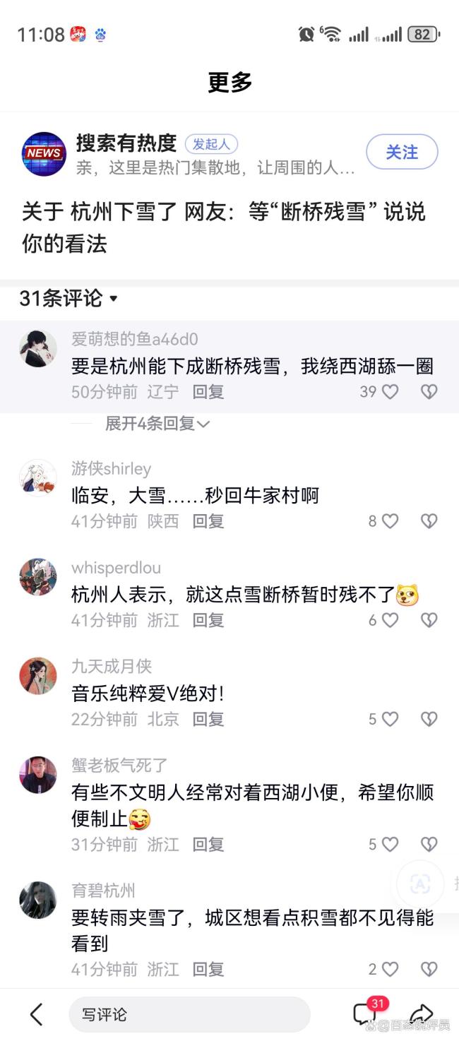 网友热议满汉文化情怀与生活热爱:“等了五年的断桥残雪终于再现,白雪覆桥身,一半消融一半留白,这就是刻在江南人基因里的浪漫!”“山里的雪厚到没过脚踝,追雪路上的拥堵都值了,南方人对雪的执念从未消散。”“红墙映雪如宋画现世,断桥承载的不只是雪景,更是千年传说与城市记忆。”“雪落杭城,围炉煮茶看窗外飞絮,平凡日子里的小确幸不过如此。”