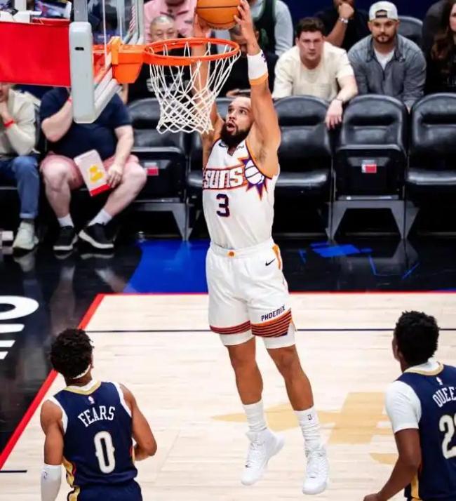 比赛最后两分钟,太阳队替补席上的球员已经全部站起来庆祝,而鹈鹕主场观众开始提前退场——123比114的比分牌宣告着一场毫无悬念的碾压。北京时间12月28日,菲尼克斯太阳客场以123-114击败新奥尔良鹈鹕,完成本赛季对鹈鹕的第三次胜利。