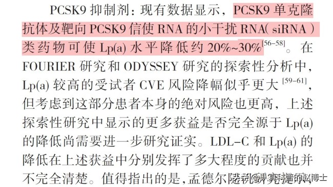 “PCSK9抑制剂”包括“PCSK9单抗”与“PCSK9小干扰RNA类药物”,它们一般能够提供的【脂蛋白(a)】降幅仅为20%-30%。