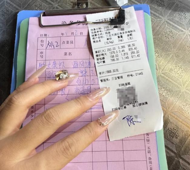 近日,安徽的陈女士发帖称,与家人在三亚旅游时,被非运营车辆拉到海鲜店吃饭,4道海鲜与2个椰子共消费1930元。其中,4道海鲜价格为1868元。点菜时,服务员强调“整个三亚都是这个价格,没钱就不要来吃海鲜”。