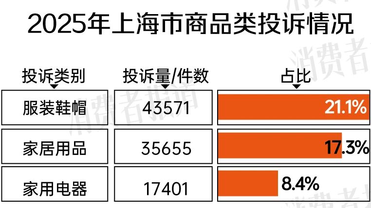 服装鞋帽、家居用品投诉量居前