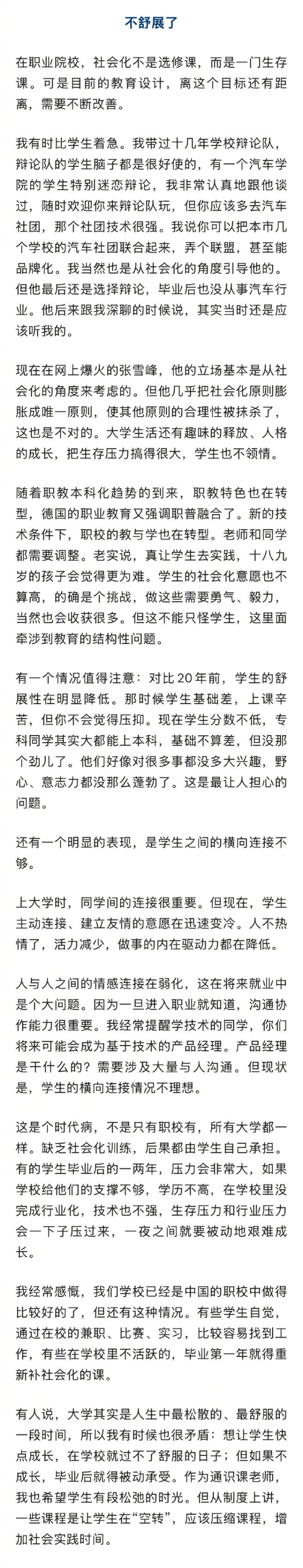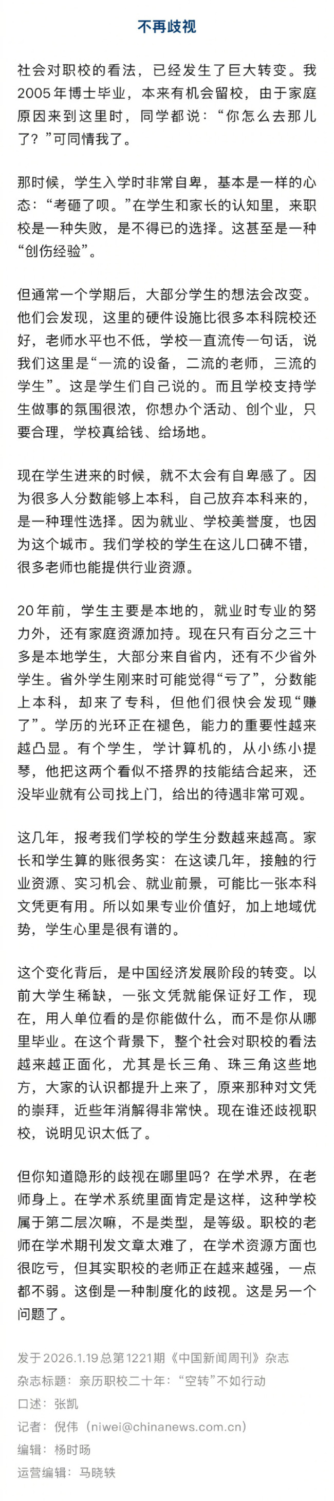 教授谈学生放弃本科选择职校现象,歧视职校者见识短浅